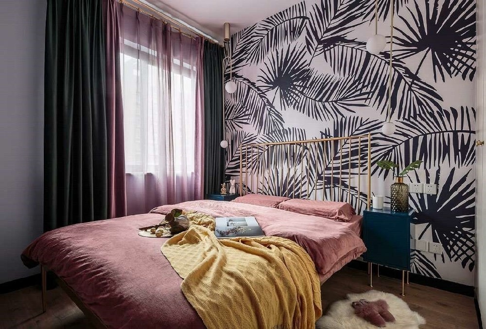 粉色的床搭配粉色的窗簾