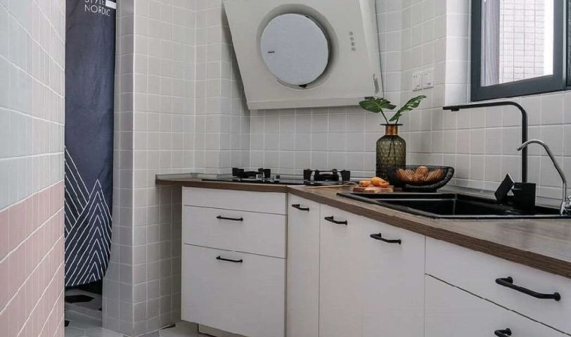 白色額墻面磚搭配白色的櫥柜