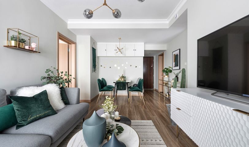 客廳以白色為主色調(diào),配以溫潤質(zhì)感的原木地板與小細(xì)腿家具,整體透露出簡約而優(yōu)雅的氣質(zhì)感。