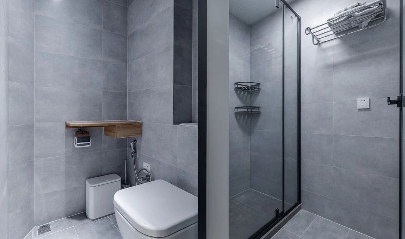 衛(wèi)生間內(nèi)部則是以水泥灰質(zhì)感的墻地磚打造,充滿了工業(yè)風(fēng)的年輕時(shí)尚感。