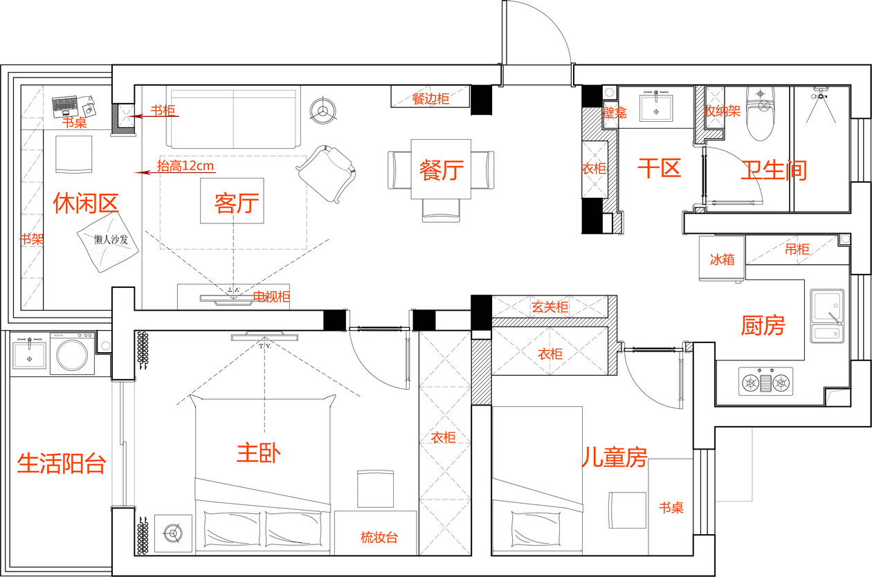 整體風格簡潔明快現代簡約風格注重室內空間的使用功能,主張廢棄繁瑣的裝飾,室內布置按功能區(qū)分的原則進行,家具布置與空間密切配合,色彩造型緊跟時尚潮流,以個性化簡單化裝修方式打造舒適家居。