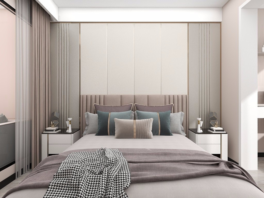 臥室采用溫馨的配色,低飽和莫蘭迪色系讓人感到溫馨舒適