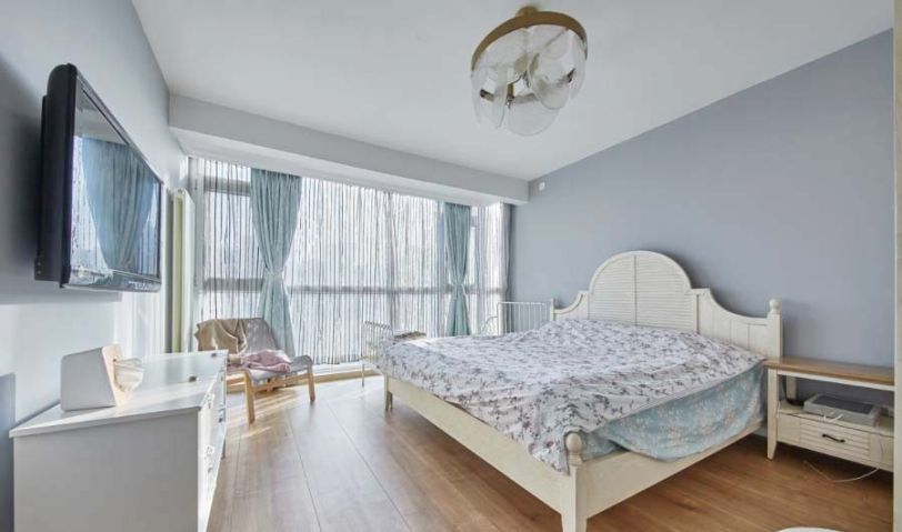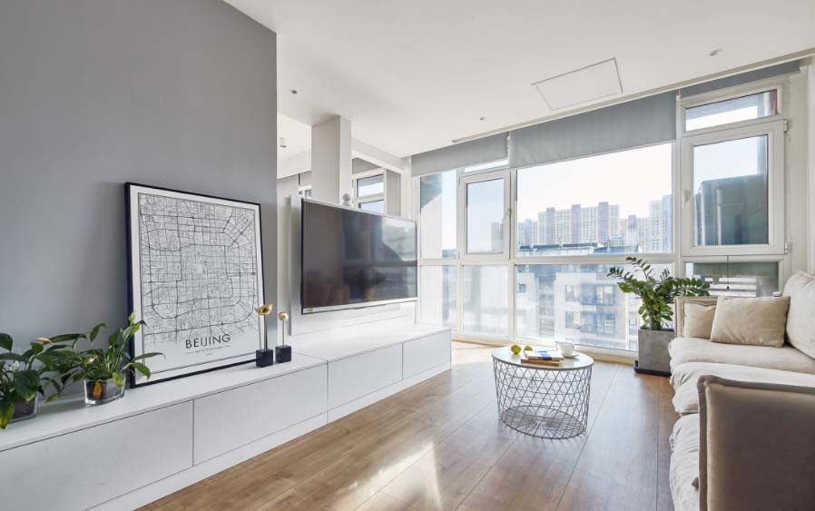 整個陽臺一側全部打通,客廳被移出來,光線被限度的引入室內,動線更加合理舒服。