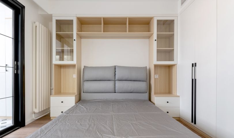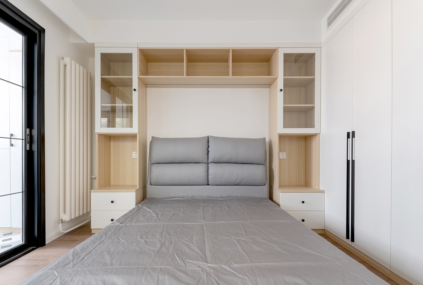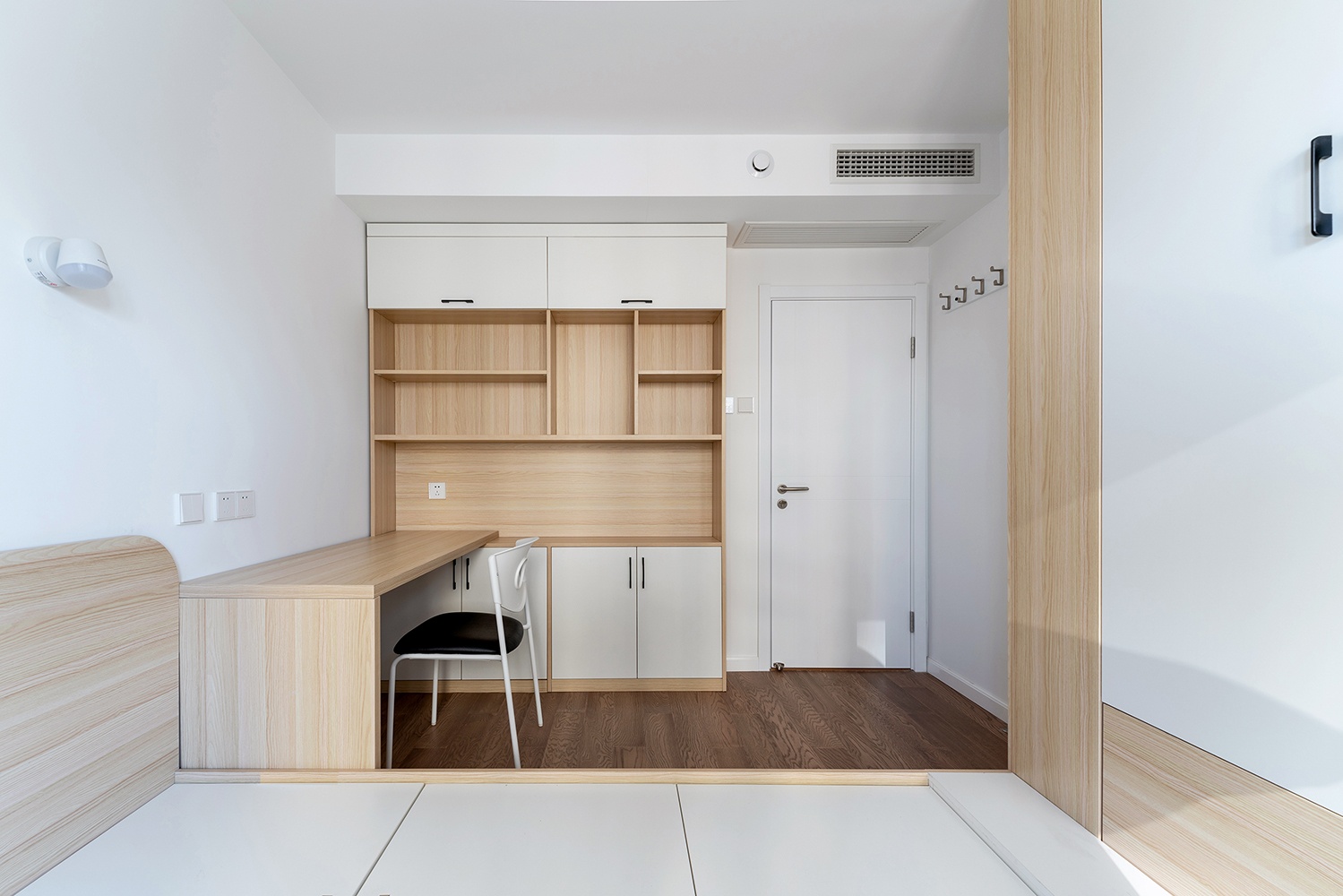 就餐區(qū)是餐桌結(jié)合卡座的形式,既能滿足一家的用餐需求,又能增加儲物。餐邊柜的設(shè)計可以將所有的茶具,以及水杯都可以收納起來,讓空間變得干凈整潔。