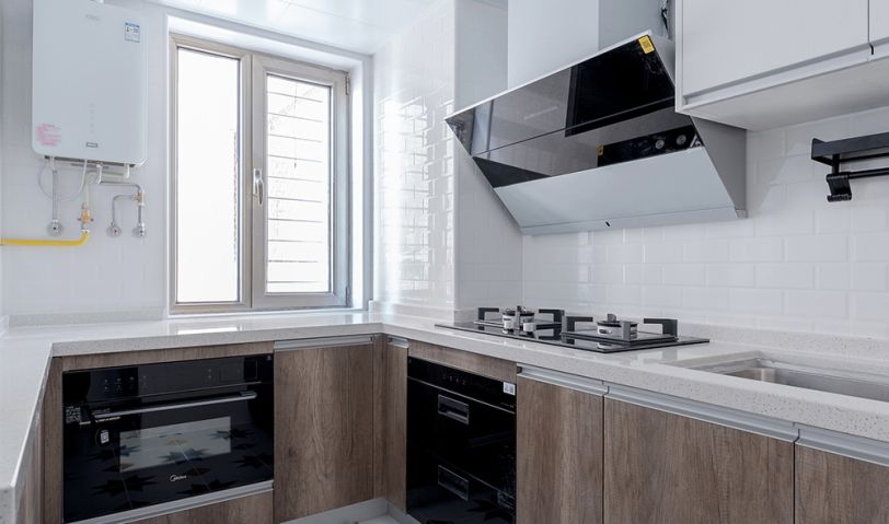 廚房更改成了U型布局,增加儲物空間的同時,擴(kuò)大操作空間。