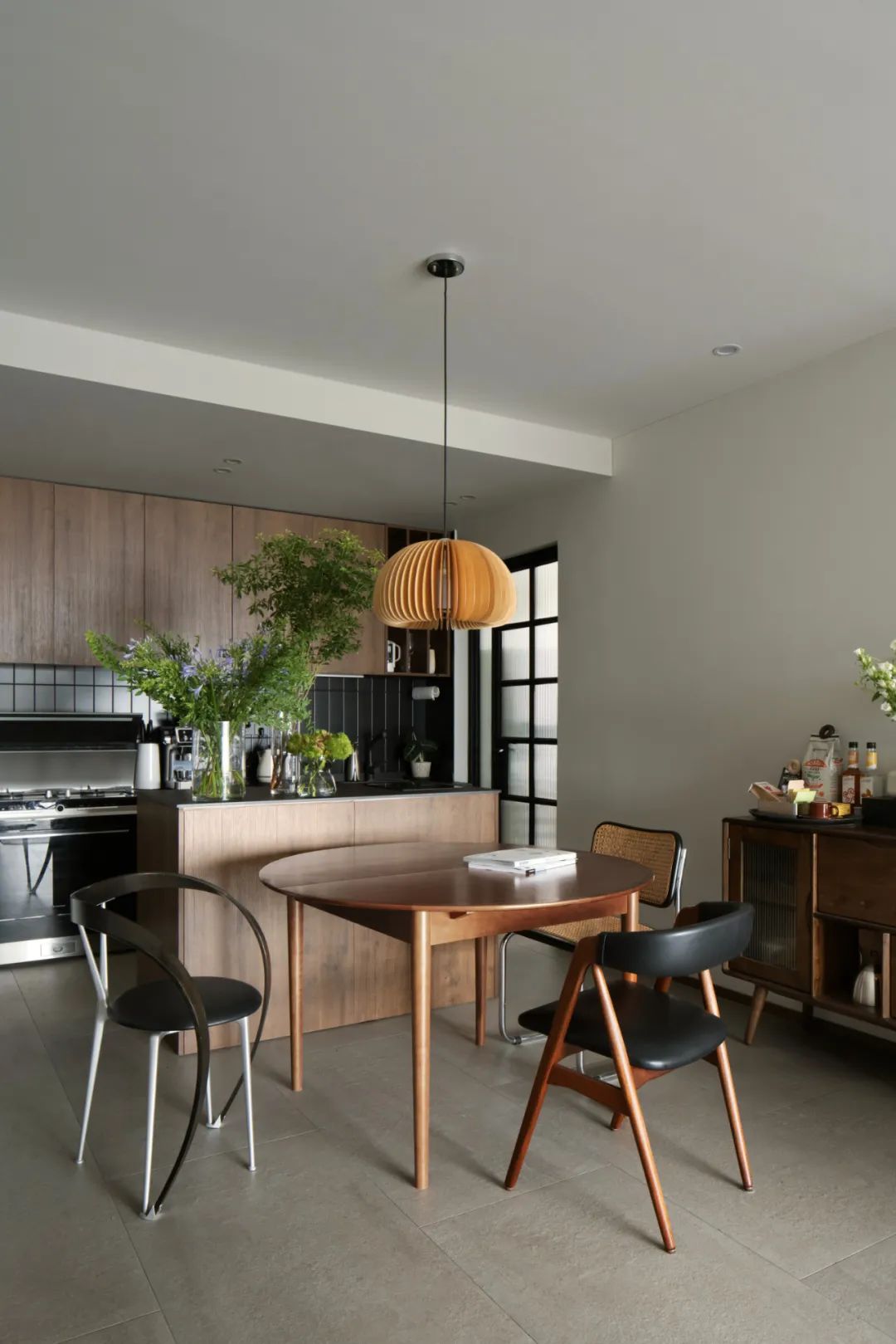 木質餐邊柜承擔用于補充客餐廳的收納,顏色上也和其他家具相搭配。