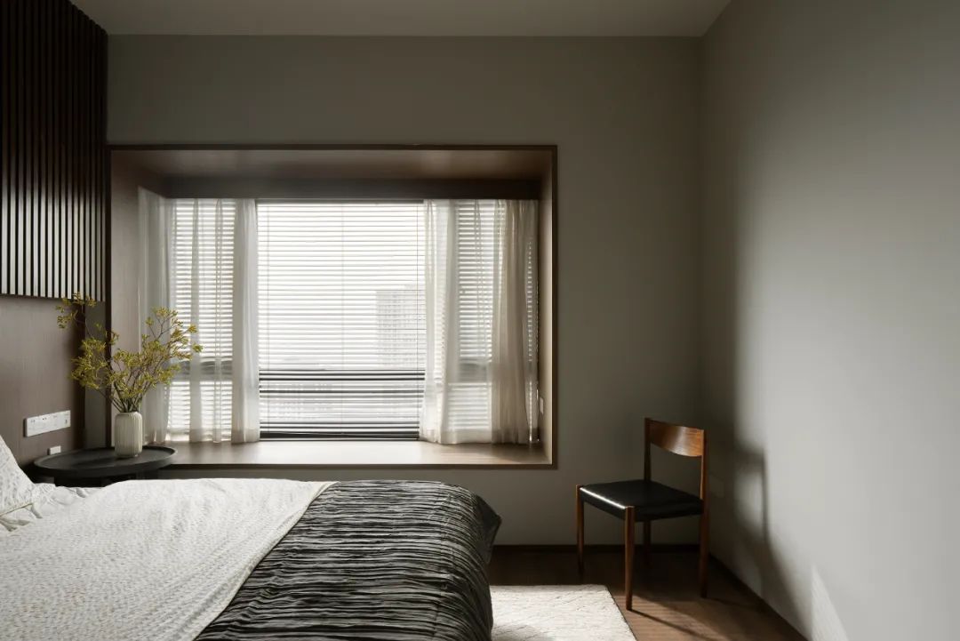 陽光會在下午時分灑進臥室,飄窗部分均用了木飾面,在光下更顯溫潤自然之意。