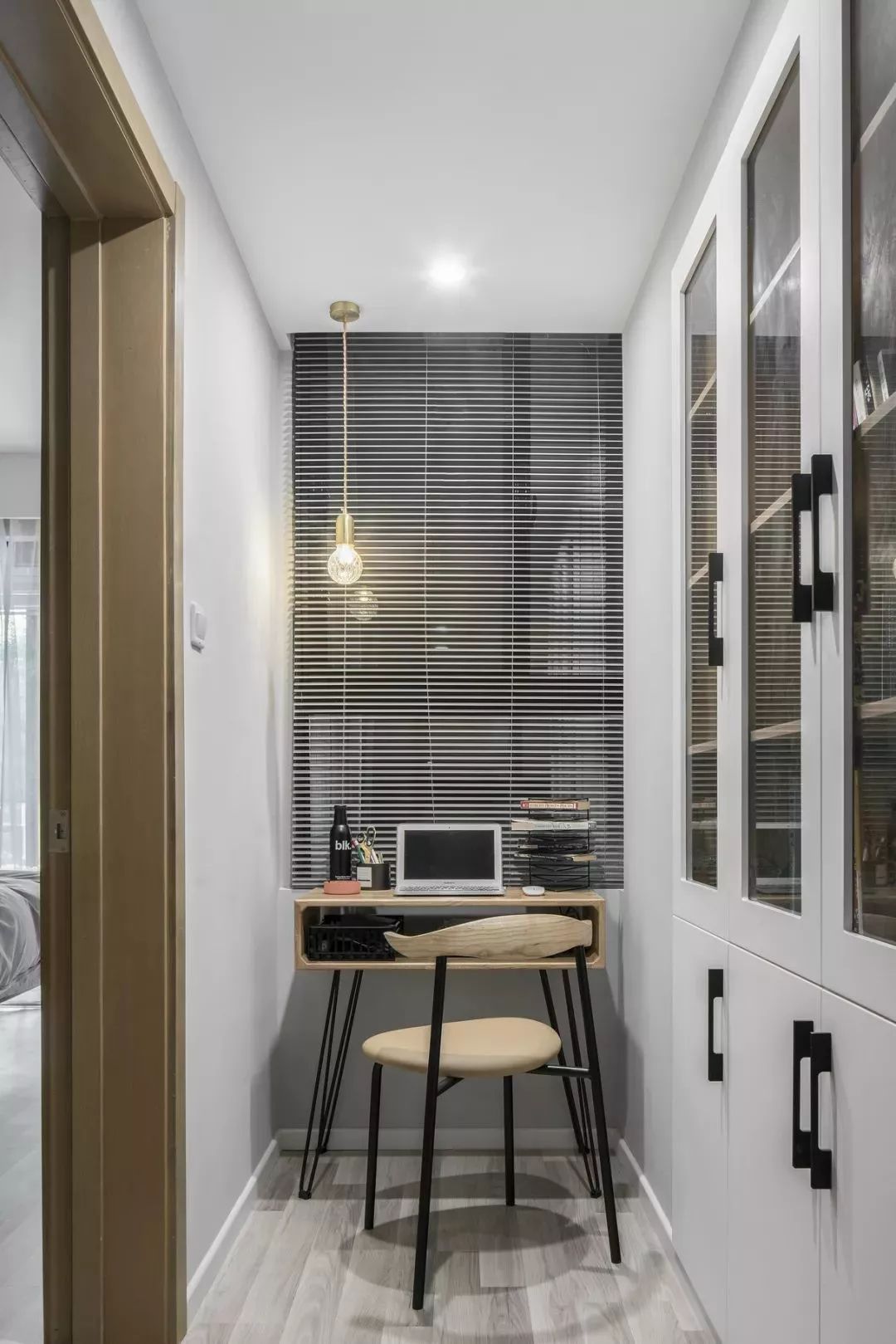 這樣一個(gè)迷你的小書房只需要1平米左右的空間,屋主平時(shí)在家工作會方便許多,百葉簾加上鐵藝的書桌椅,小菜覺得很有格調(diào)。