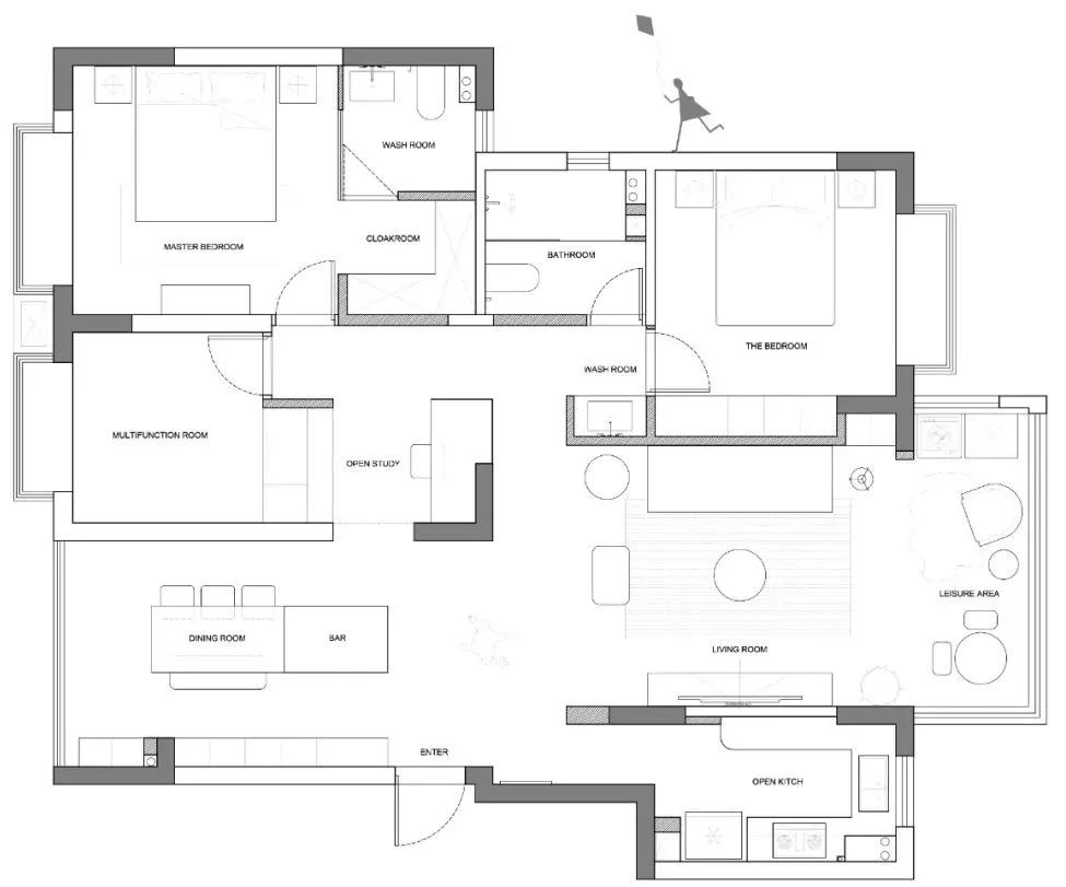 以書房為中心的回字形動線布局,在提供靈活自由的動線的同時,也給屋主的愛好預留了更多搭配組合的空間