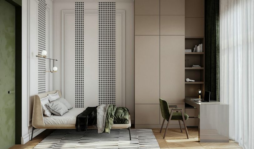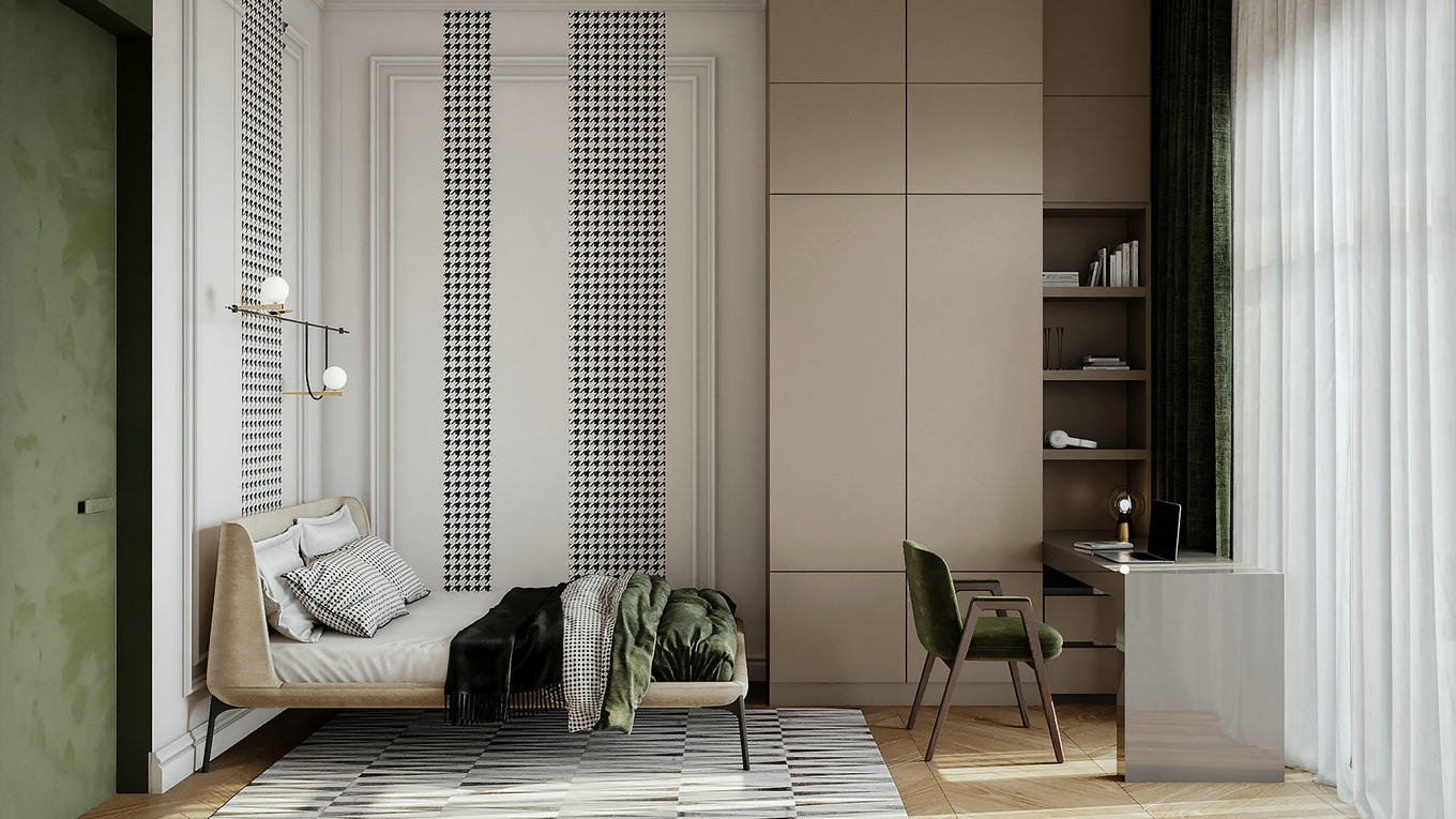 臥室采用從簡元素,我們希望呈現的空間,簡約不多余,干凈不復雜,房子可以不必是豪宅,但既然是心靈的港灣,它一定得讓你找到平靜和舒適。