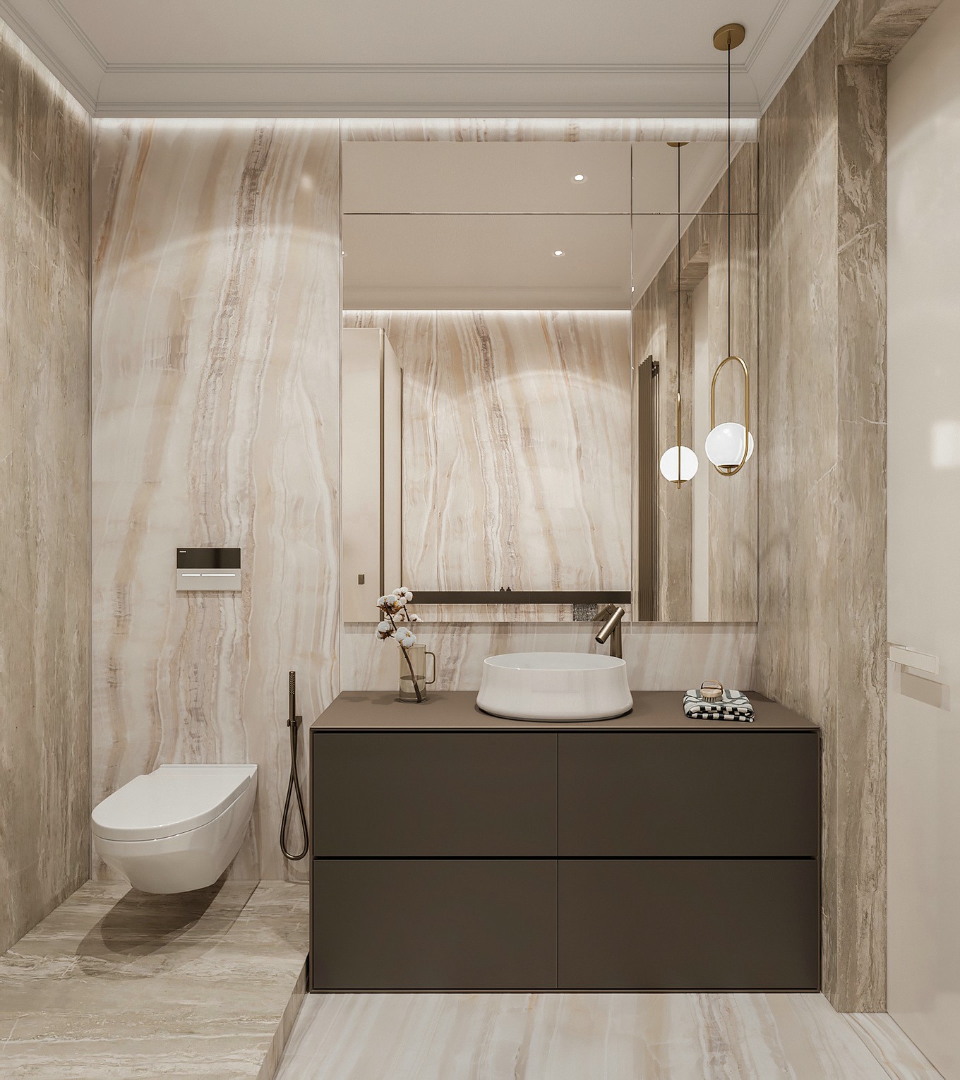 采用極簡風設計,簡約而不簡單,瓷磚的自然紋理讓簡約的設計更顯藝術美