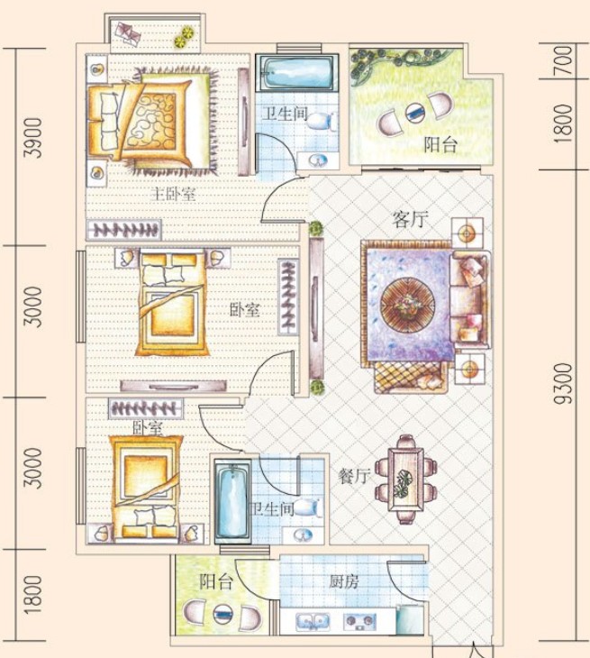 案例名稱 輕奢活力綠 戶型 案例面積 96㎡