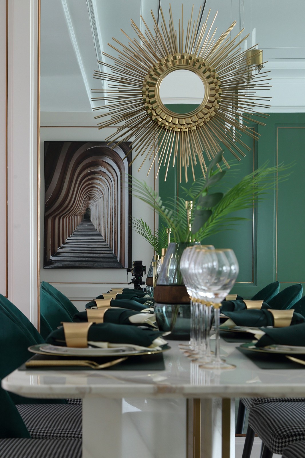 深深淺淺的綠,層次分明,為生活注入詩意的蔥郁,蓬勃又寧謐,讓人可以在客廳歡樂的笑鬧聲與閑適沉靜的慢生活間自由切換。