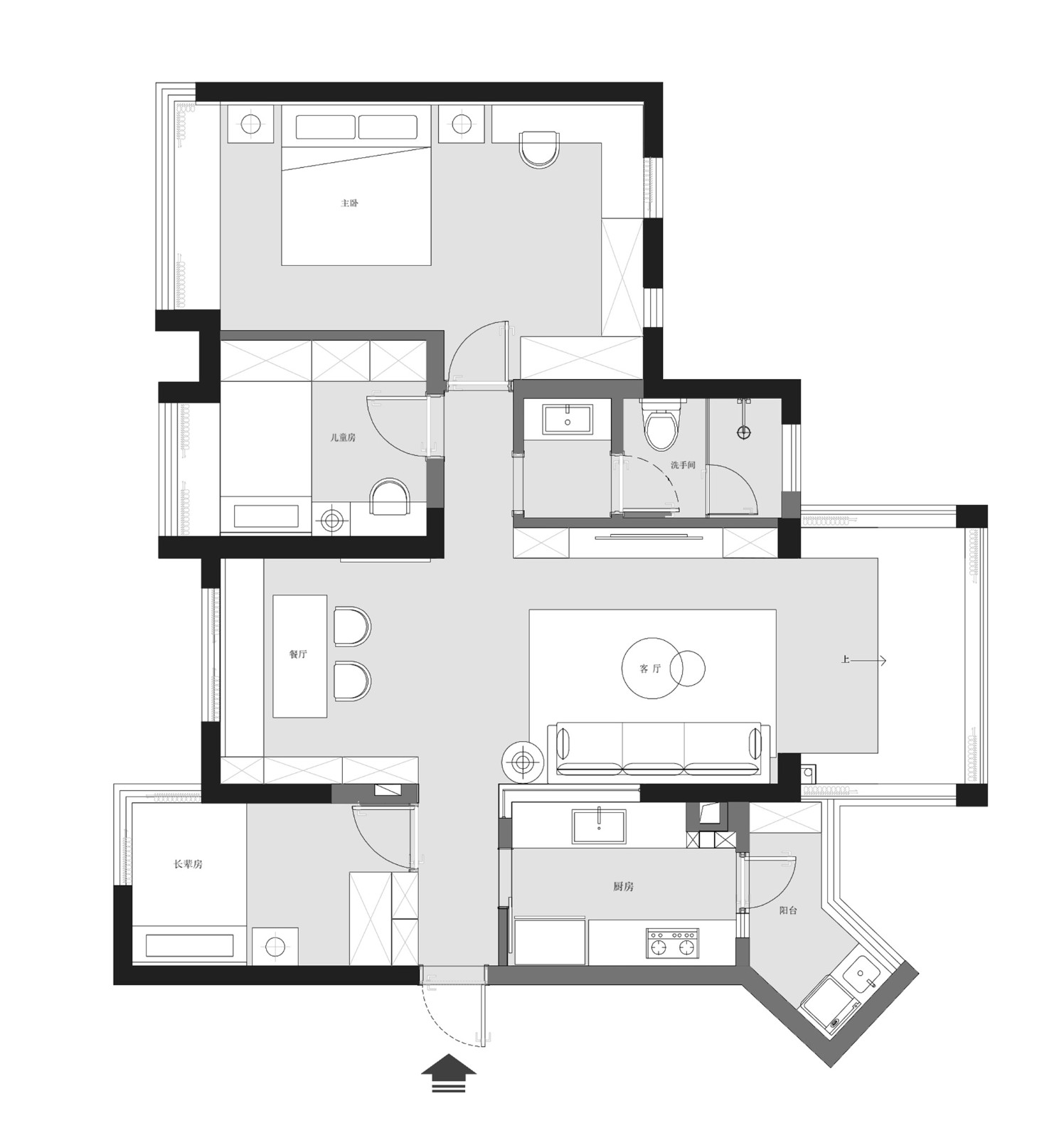 | 案例名稱 | 重構后的夢幻轉身 | 戶型 | 兩居室 | 案例面積 | 106㎡ |