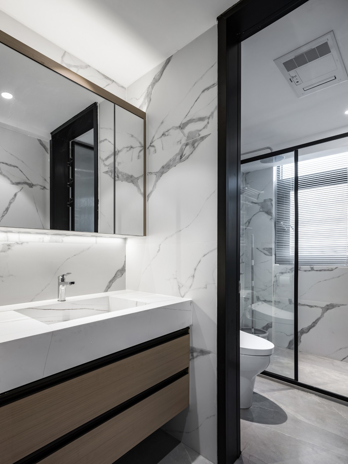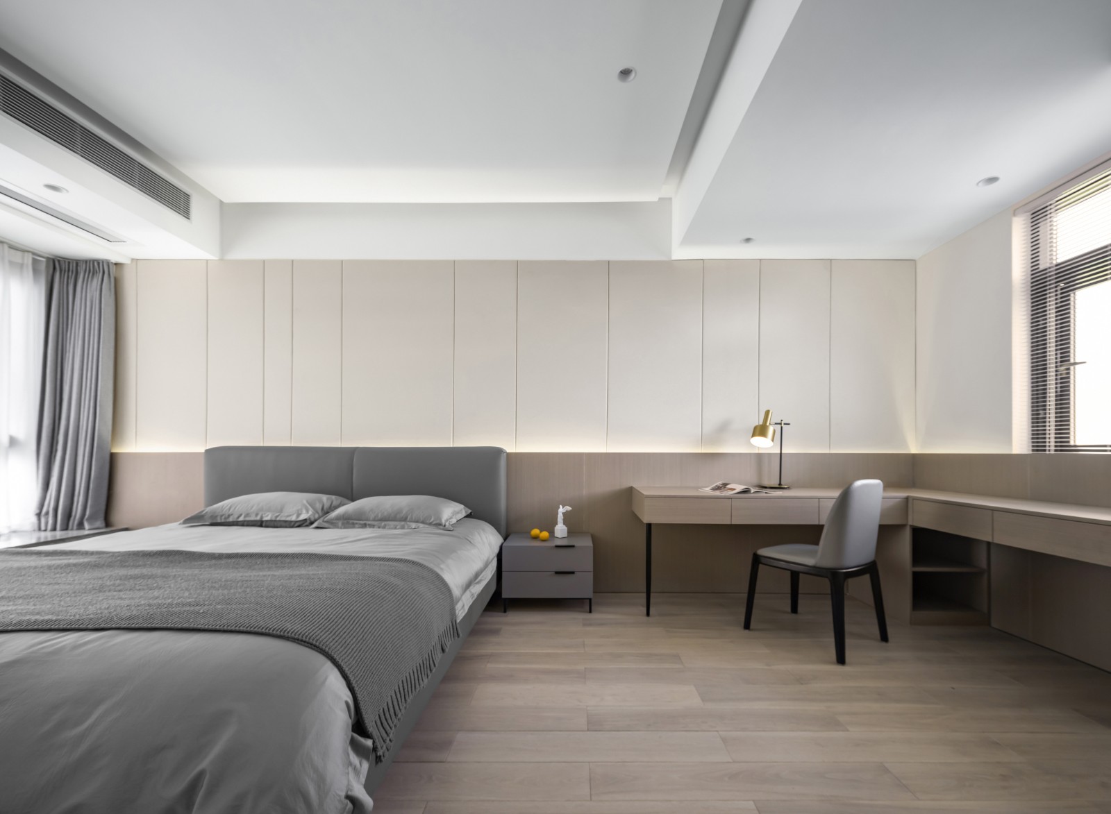 客餐廳的天花采用無主燈和反燈槽設計,搭配中央空調,燈光柔和,簡潔舒適。