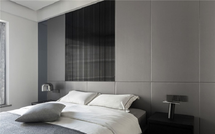 主臥的空間是干凈溫暖的, “暖”并不是在色彩上的體現(xiàn), 而是希望通過(guò)材質(zhì)的運(yùn)用和生活方式的結(jié)合, 從觸覺的舒適來(lái)提升溫馨感。
