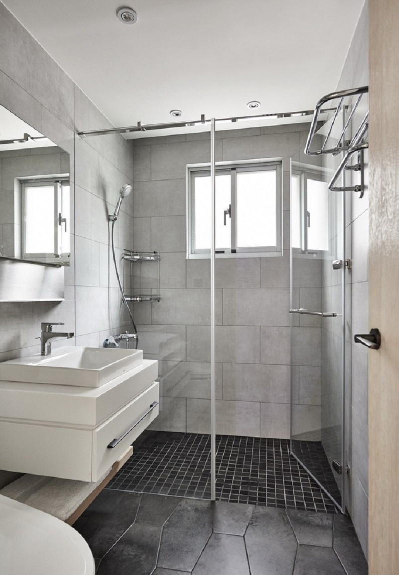 干濕分離的衛生間,用的灰色瓷磚也是不用款式的。