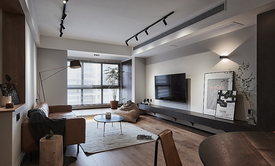 客廳,溫潤的木質(zhì)飽有細(xì)膩的紋路,低飽和度的色彩搭配,將柔軟與剛硬交錯(cuò)糅合。