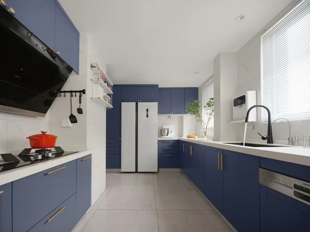 因?yàn)槌W∪丝谥挥?口人,所以設(shè)計(jì)師大膽地舍棄了入戶衛(wèi)生間,將廚房面積擴(kuò)大一倍,并進(jìn)行了雙動(dòng)線設(shè)計(jì),食材采買后由門廳落塵區(qū)直接進(jìn)入廚房再?gòu)膹N房到達(dá)餐廳,空間動(dòng)線更加合理和流暢。