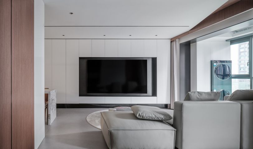 一直以來人們認為的極簡就是一味的追求“空無一物”的過程,踐行極簡的生活其實是沒必要從繁瑣走向另一個極端的過程,追求空間的美觀卻又不囿于此,這套案例我們通過材質和布局創造了一個通透明亮的家,用原木色彩的木飾面來中和銳利線條,大面積的隱形收納柜保證了收納的整體性又將物品收納于無形之中,功能與美觀得到共存。