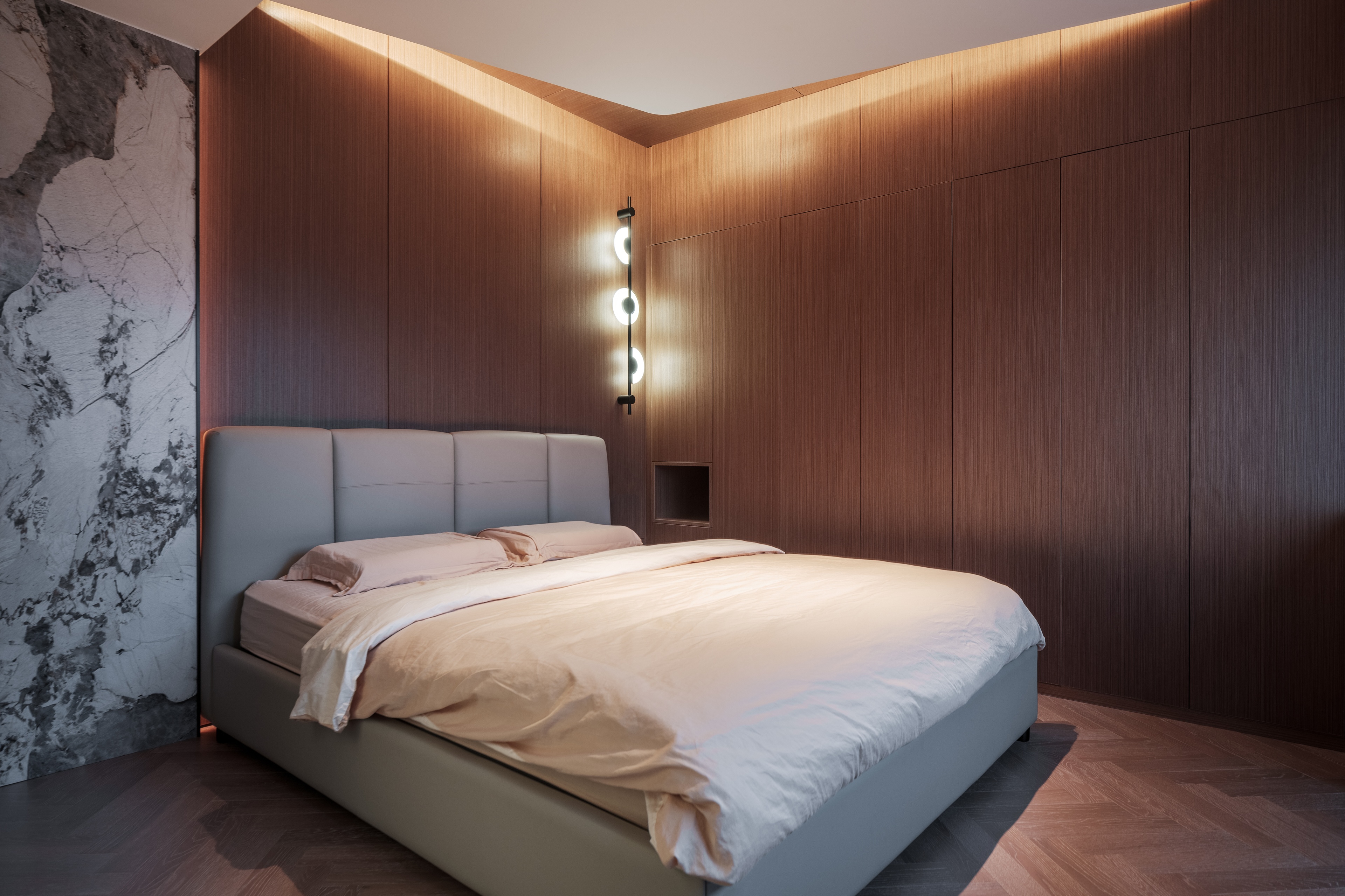 功能主義風格追求空間的美觀卻不囿于此,以實用的布局突破傳統的設計,家的“質感”永遠大于“新鮮感”,原本被臥室墻體阻擋的光線打通后釋放進來