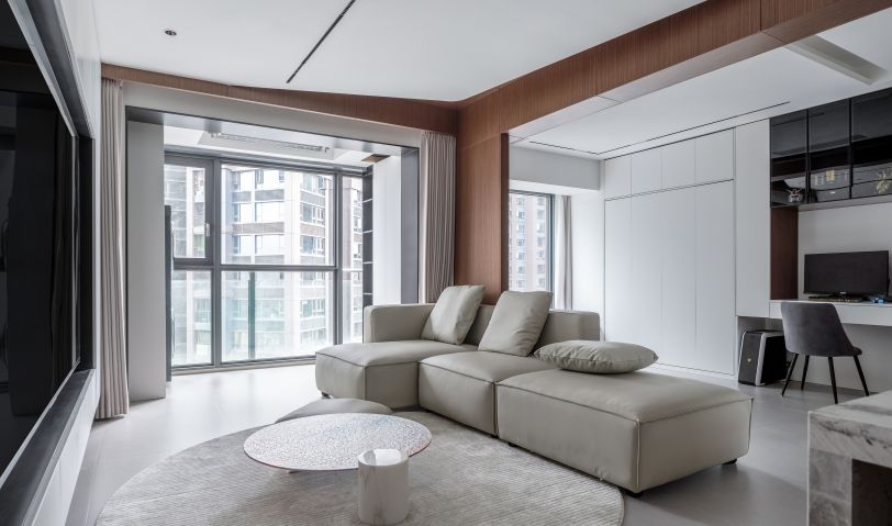 一直以來人們認為的極簡就是一味的追求“空無一物”的過程,踐行極簡的生活其實是沒必要從繁瑣走向另一個極端的過程,追求空間的美觀卻又不囿于此,這套案例我們通過材質和布局創造了一個通透明亮的家,用原木色彩的木飾面來中和銳利線條,大面積的隱形收納柜保證了收納的整體性又將物品收納于無形之中,功能與美觀得到共存。