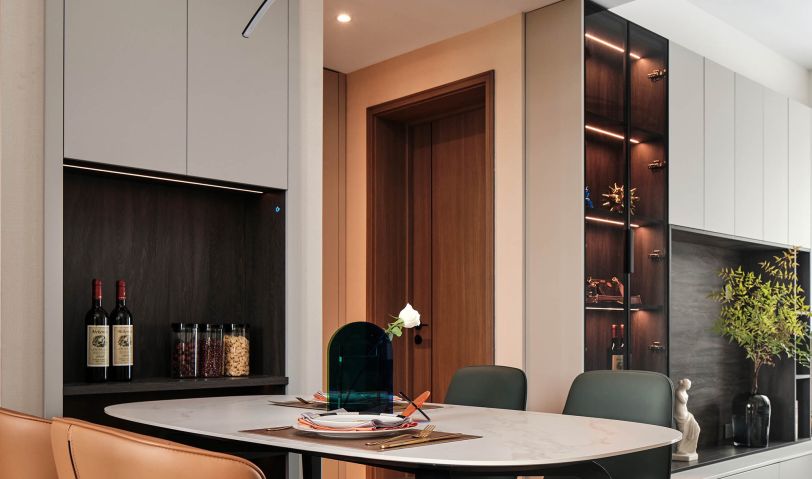 空間記錄著自然光隨性穿梭的氣韻,將簡(jiǎn)奢、明亮、低調(diào)的多種元素混合搭配,塑造出都市美學(xué)的簡(jiǎn)約型格。上淺下深的用色法則運(yùn)用,既展露材質(zhì)的溫潤(rùn)美感,又以與人互動(dòng)的體感和動(dòng)線沉淀出高雅品味。