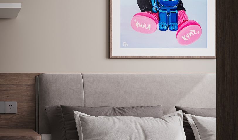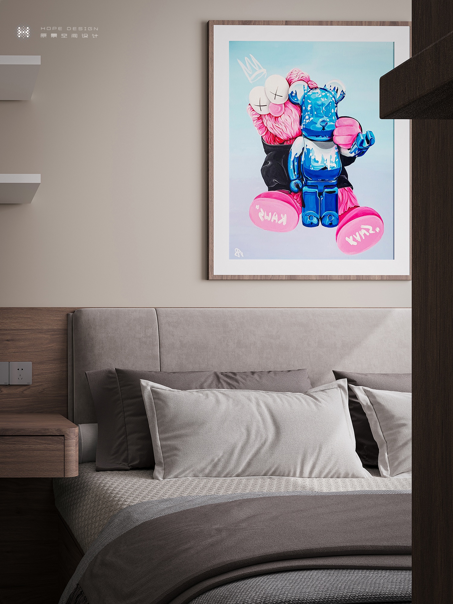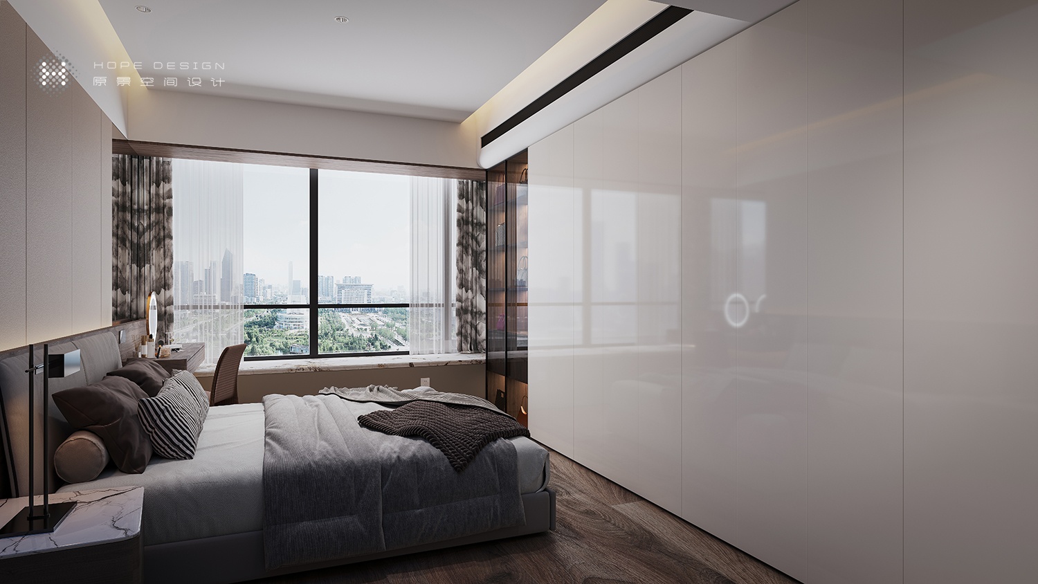主臥硬包床頭映射于燈影之中,藝術質感隨之提升。