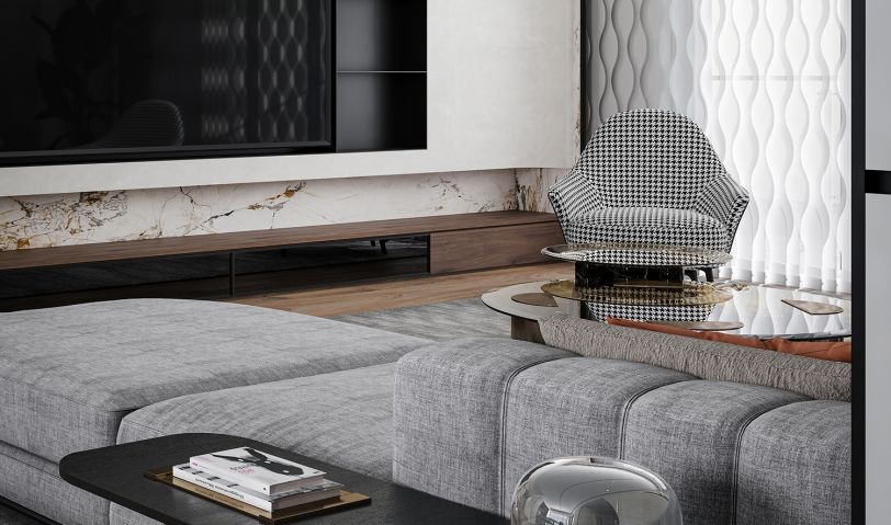 入戶而進,柔光透影,客廳空間映現于眼前。