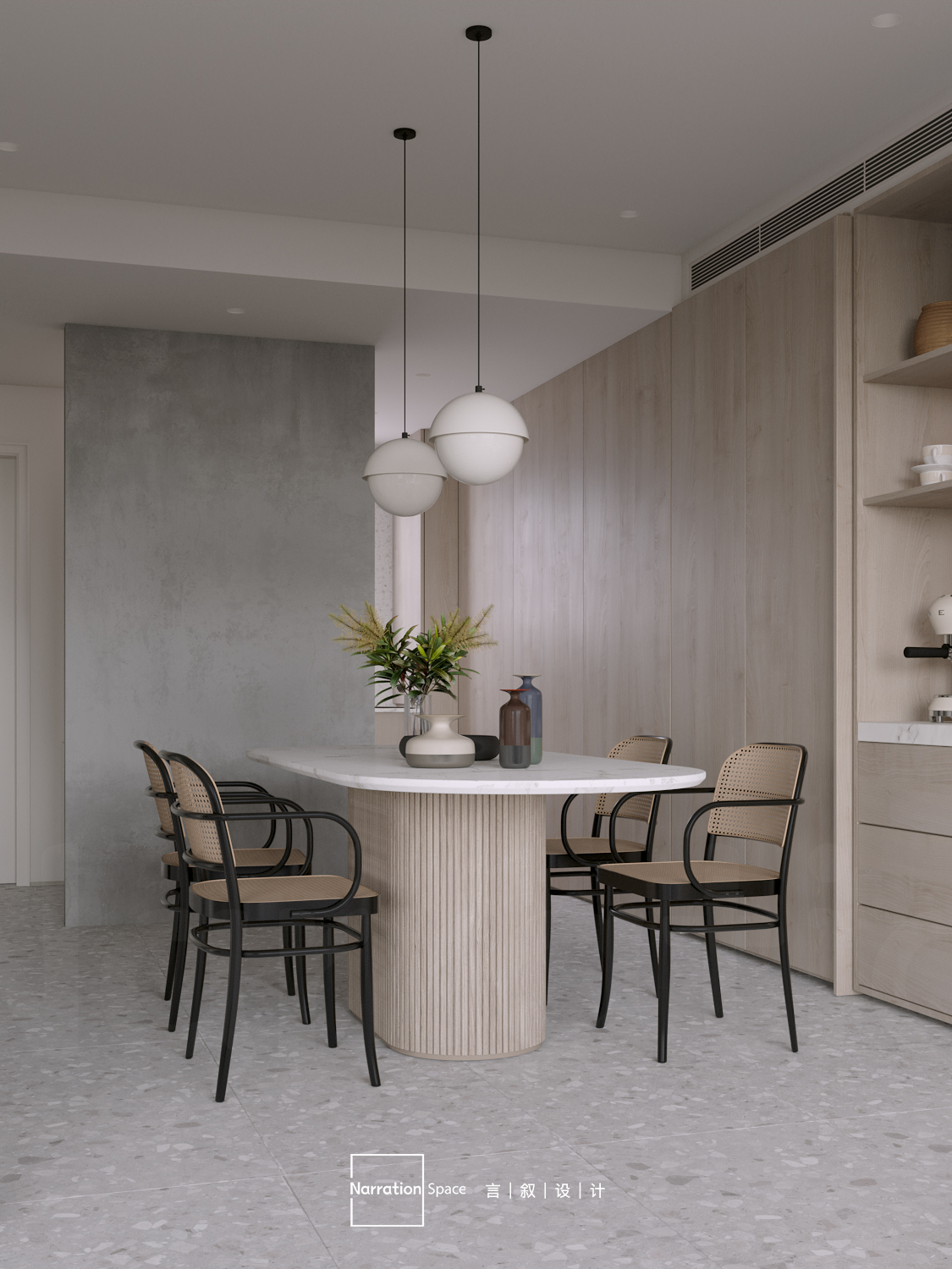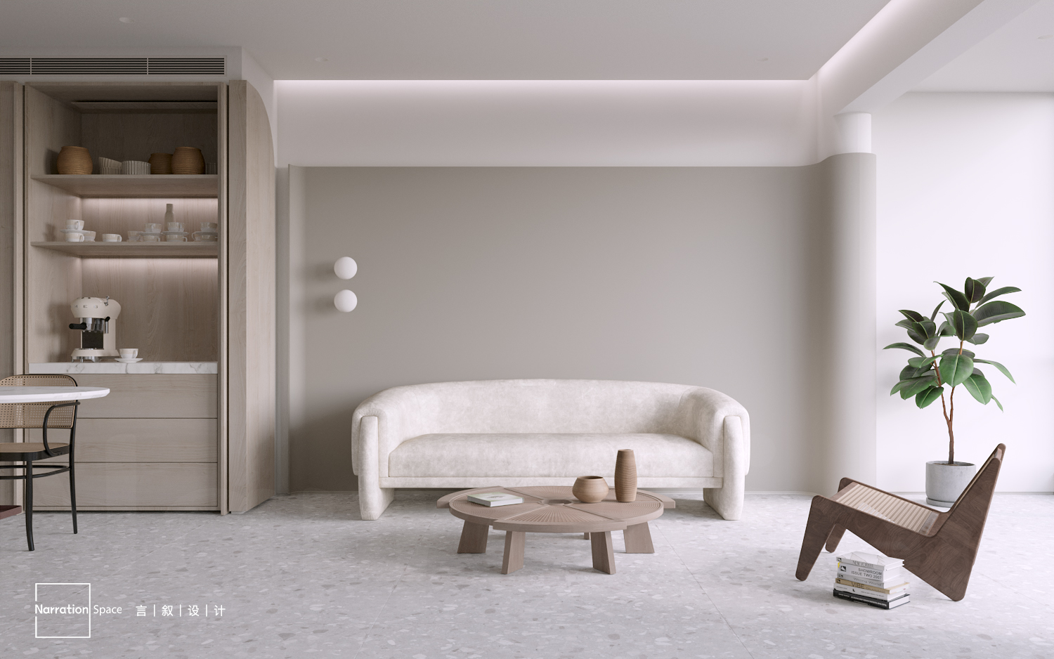圍繞極簡,侘寂的主體氣質,為當下的二人世界、以后的三口之家打造一片廣闊溫馨的天地。在“去風格化”的主流趨勢下,我們避開軟硬裝營造的空間,而是斟酌結構之間的比例、層次、透視、感受,增進人與家的親密關系。