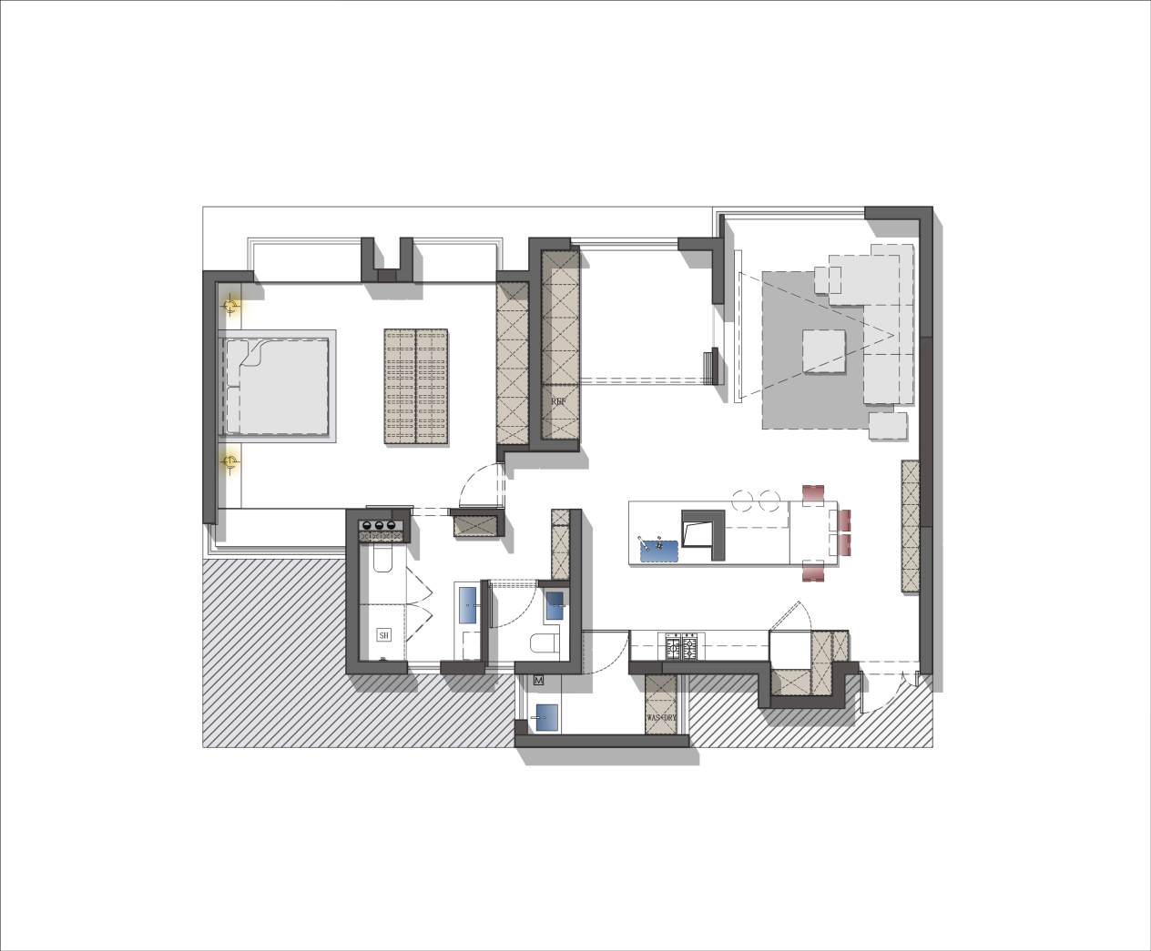 本案的屋主是一對青年夫妻,喜歡極簡,比較排斥常規(guī)而落于俗套的樣板房設(shè)計(jì),在找到我們之前,業(yè)主已經(jīng)聯(lián)系過不少設(shè)計(jì)公司,因?yàn)檫_(dá)不到心中期待的極簡,所以堅(jiān)持尋找,最終聯(lián)系到了我們。