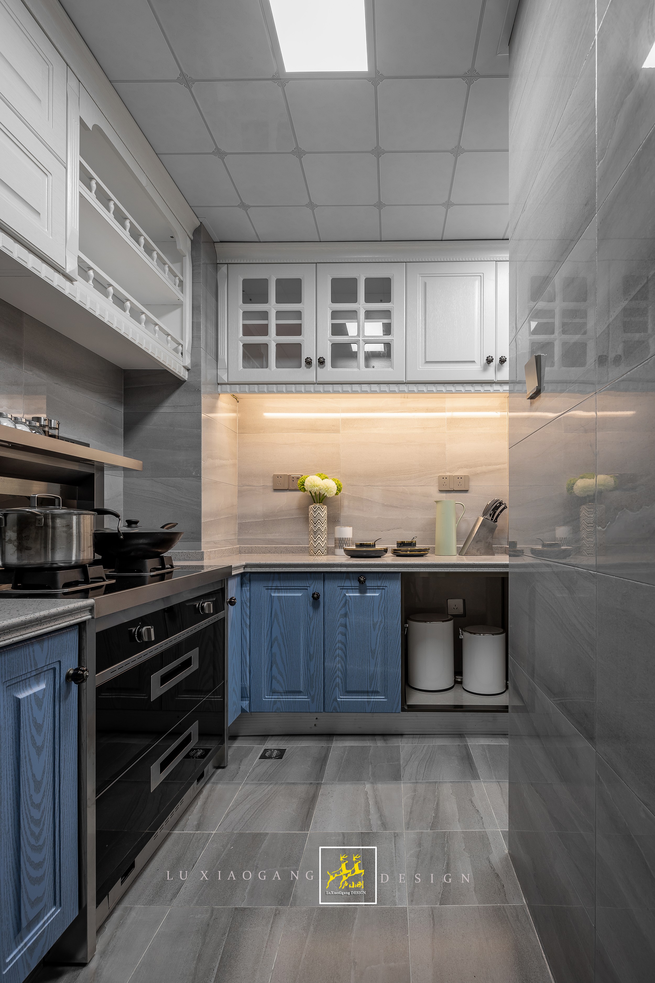 白與灰的主色調降低了設計語言的雜質,給人干凈利落的感覺。黑與藍的穿插強化了視覺重點。而背光燈的設計則為屋主的活動帶來更多的方便。