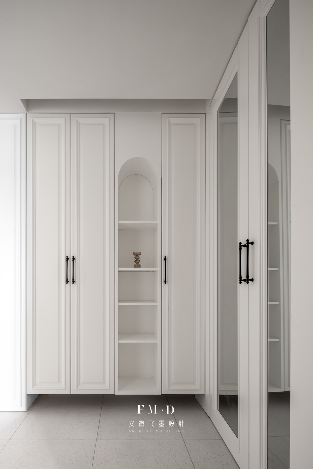 六口人常住的家,對收納有更高的要求,原始老人房動線不便,我們調整老人房的門洞和內部衛生間的布局,實現雙面柜體設計,還擁有了業主需要的儲物間(右側門后)