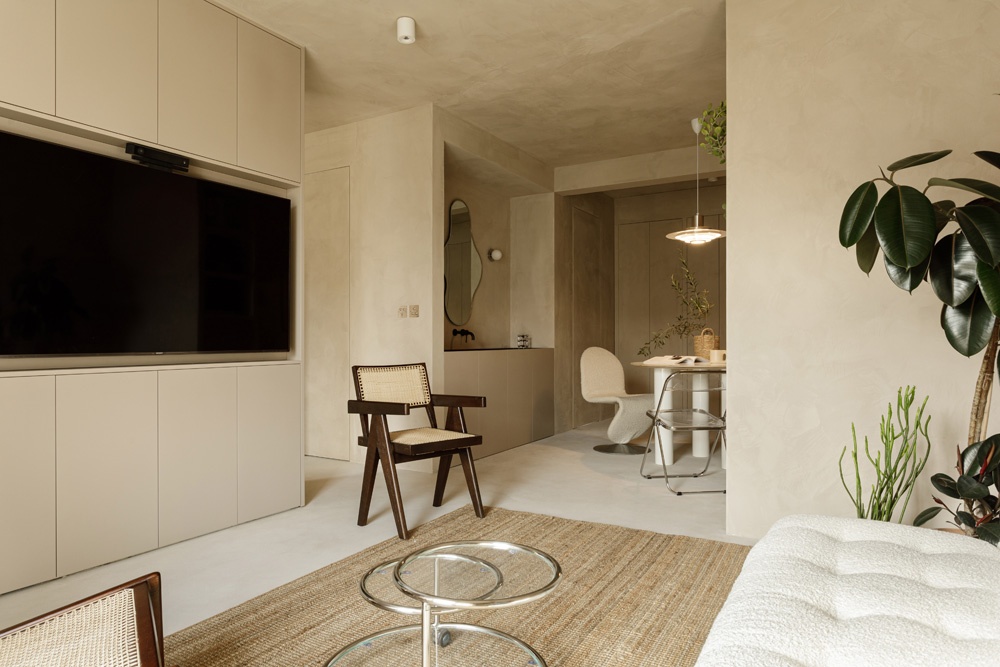客廳的設(shè)計(jì)比較簡(jiǎn)單,硬裝除了墻面和地面的材質(zhì)沒有任何多余造型