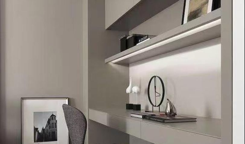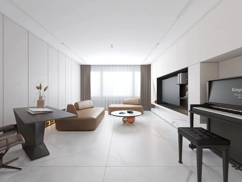 整個(gè)空間做無主燈處理,以白色為主,柜子造型簡(jiǎn)單無拉手,搭配皮質(zhì)沙發(fā)讓整個(gè)空間更有質(zhì)感。