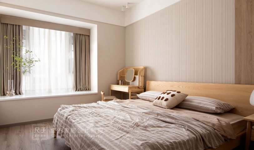 大大的飄窗,讓光線成為整個空間最不缺乏的元素,木色與米色在自然光的牽引下,呈現(xiàn)出柔美的氛圍感。