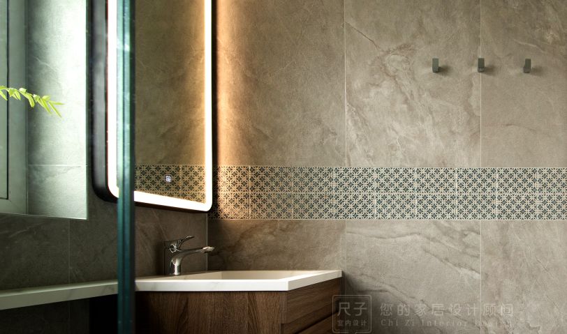 做舊的灰色瓷磚有一種古樸大氣的模樣,小花磚的點綴讓空間顯得復古又不失活潑。