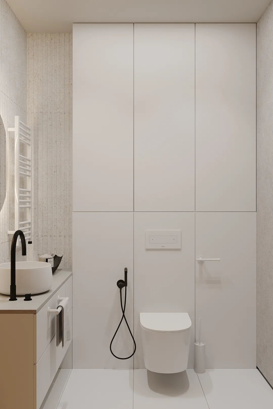 主衛采用干濕分離+入墻式設計,最大化保證地面、墻面的清爽整潔,浴室鏡則在一定程度上起到延伸視覺的效果,緊湊但不局促。