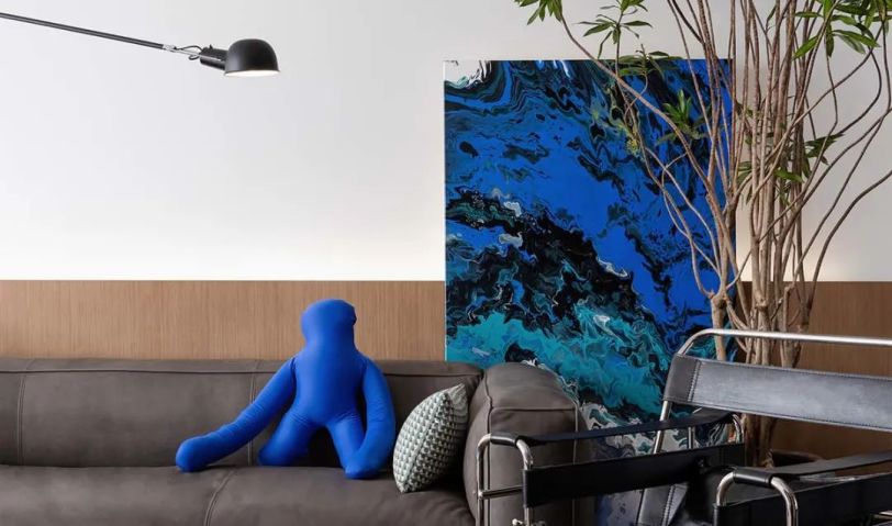 連續的包裹也使得因為剪力墻無法敲掉的客廳與陽臺間的一段墻面,不那么突兀。
