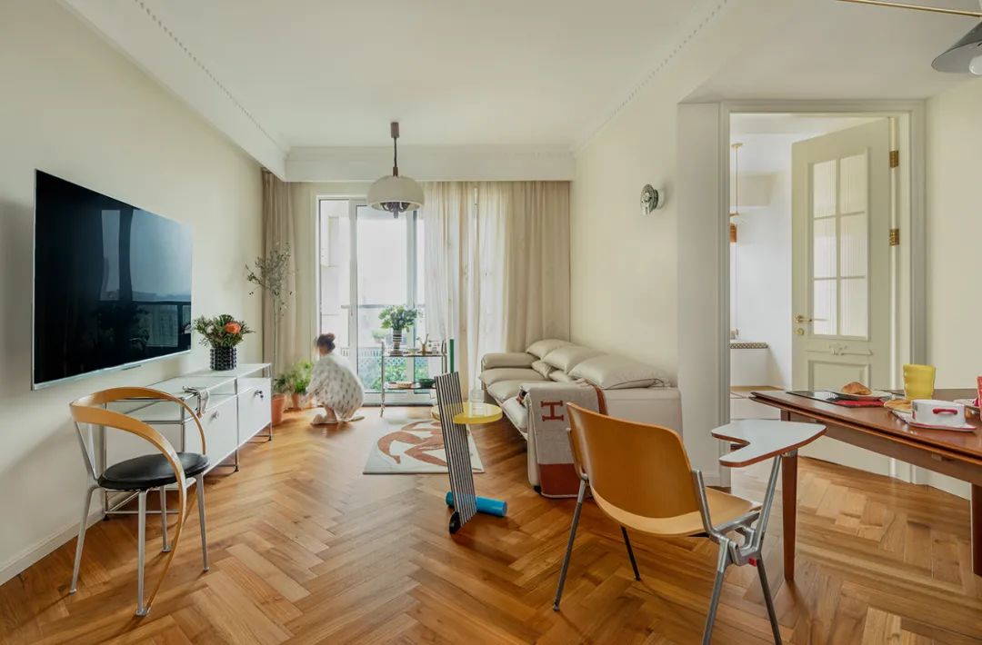 打開家門,暖意拂面而來。客餐廳完全敞開,相對于大戶型,小戶型其實更需要空間感。