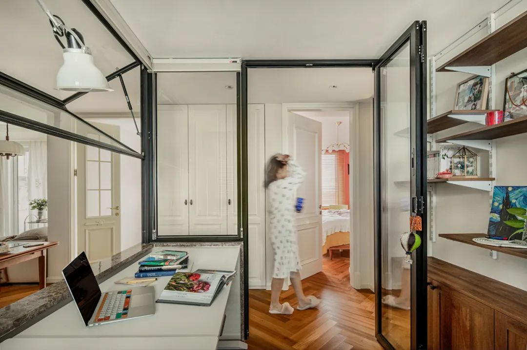 書房是屋主高頻使用空間,溝通需求時,屋主表示:“我不喜歡封閉的書房,感覺像在關禁閉。我喜歡透的,但需要隔音。”