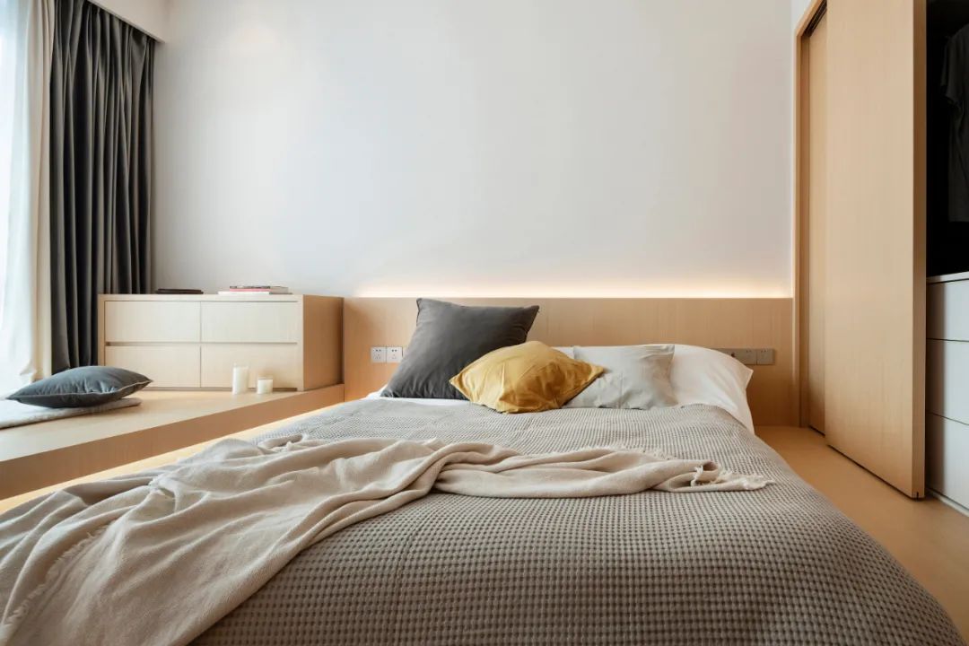 主臥設計成榻榻米的形式。