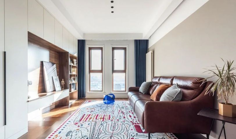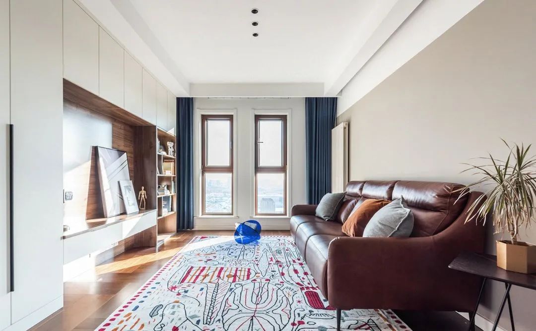 干凈和諧的背景墻,搭配色彩飽和度極高的地毯,有收有放才是色彩運用的聰明邏輯。