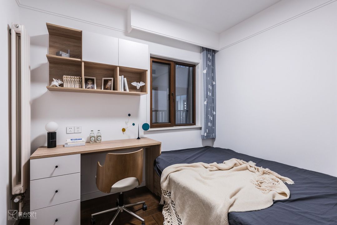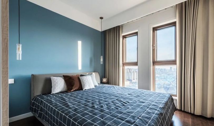 臥室沒有過多的裝飾,純色乳膠漆墻面+無主燈設(shè)計,放大空間視覺感。