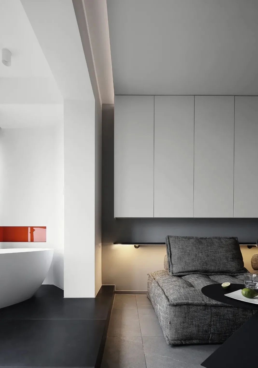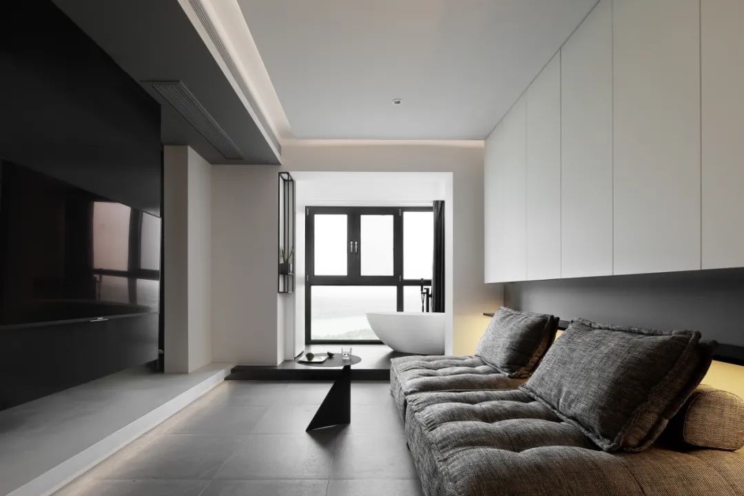 陽臺一角,通過不同的高差分割功能區(qū),放置浴缸,讓空間變得生動有趣,增加生活的儀式感。