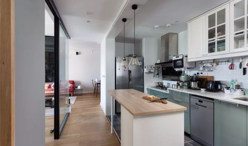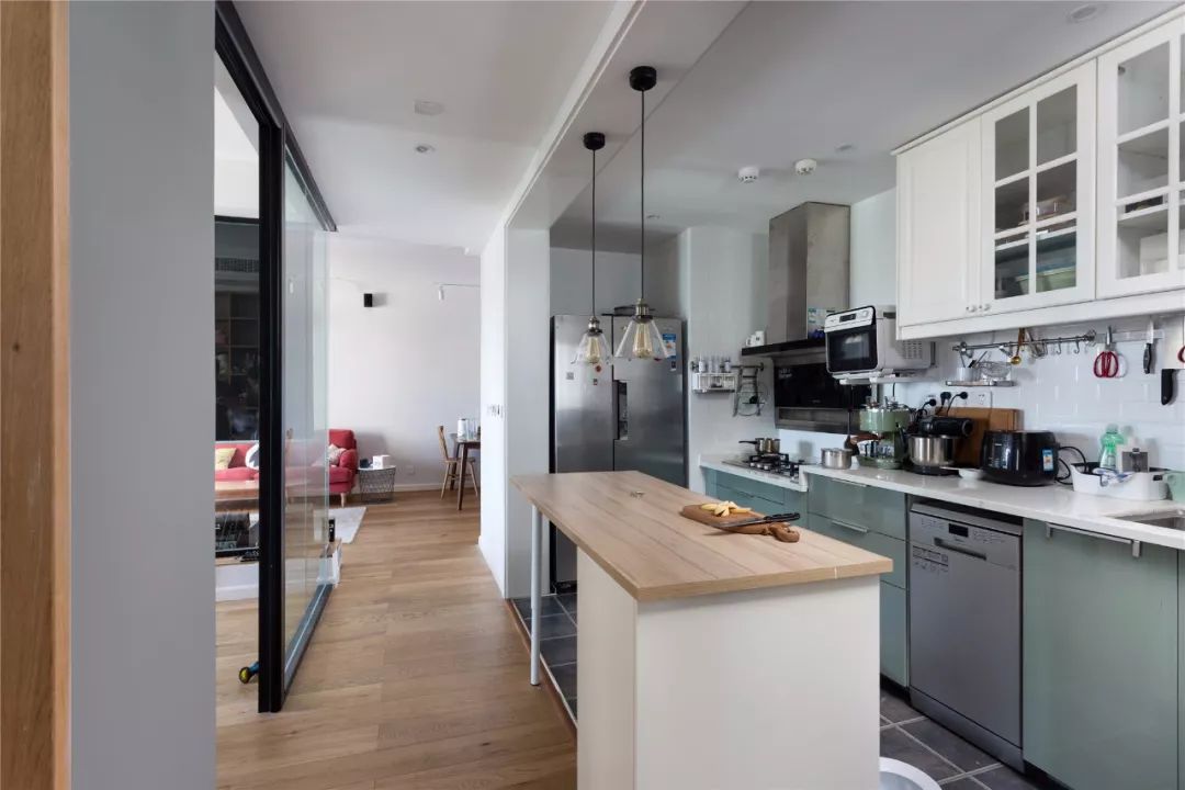 做成開放式的廚房,利用過道的區(qū)域,在中間做了一個(gè)吧臺(tái),同時(shí)也可以作為備餐區(qū)跟餐廳區(qū),因?yàn)橛兴?,生活都變得豐富起來。