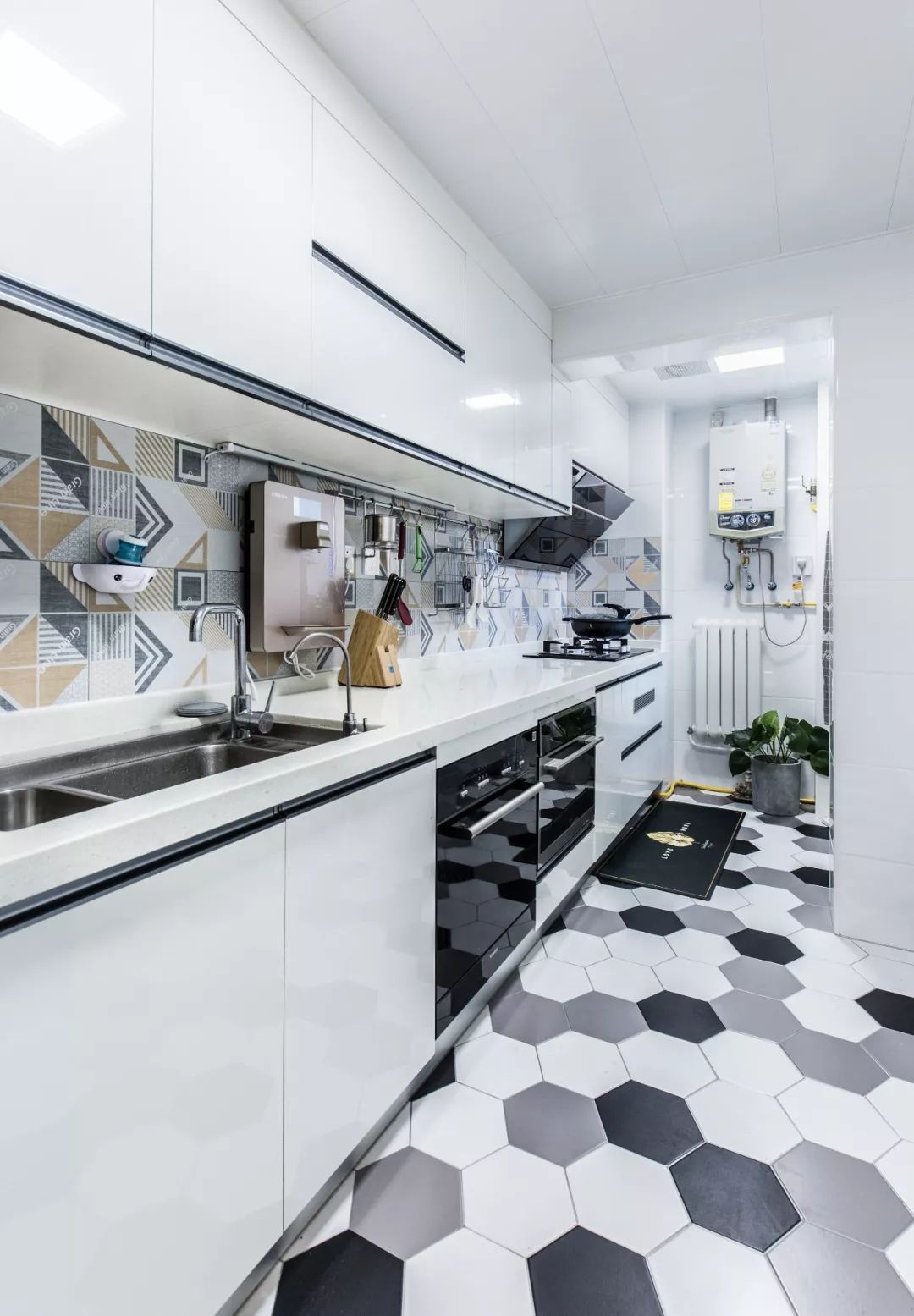 地面六角磚、墻面花磚,使廚房充滿生機,同時也使烹飪成為了一件充滿樂趣的事。