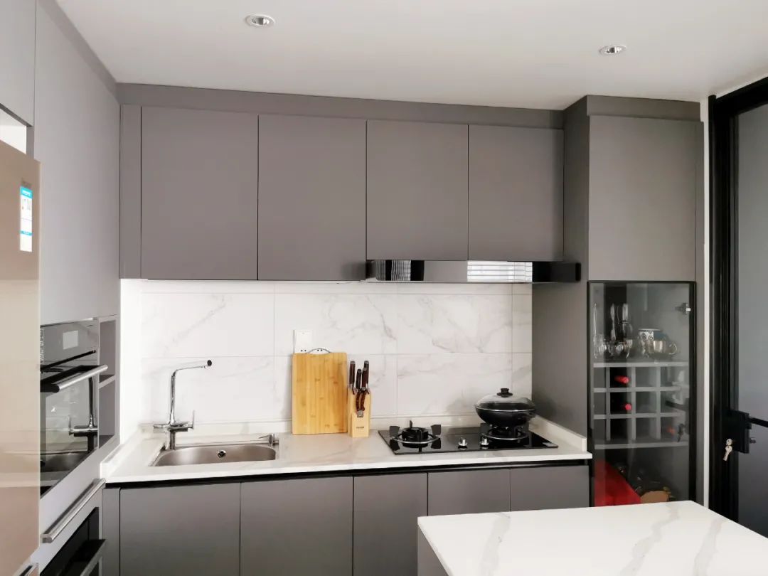 2. 廚房墻面拆除,變成開放式廚房,增加島臺,擴(kuò)大餐廚空間面積,滿足日常聚會需求。