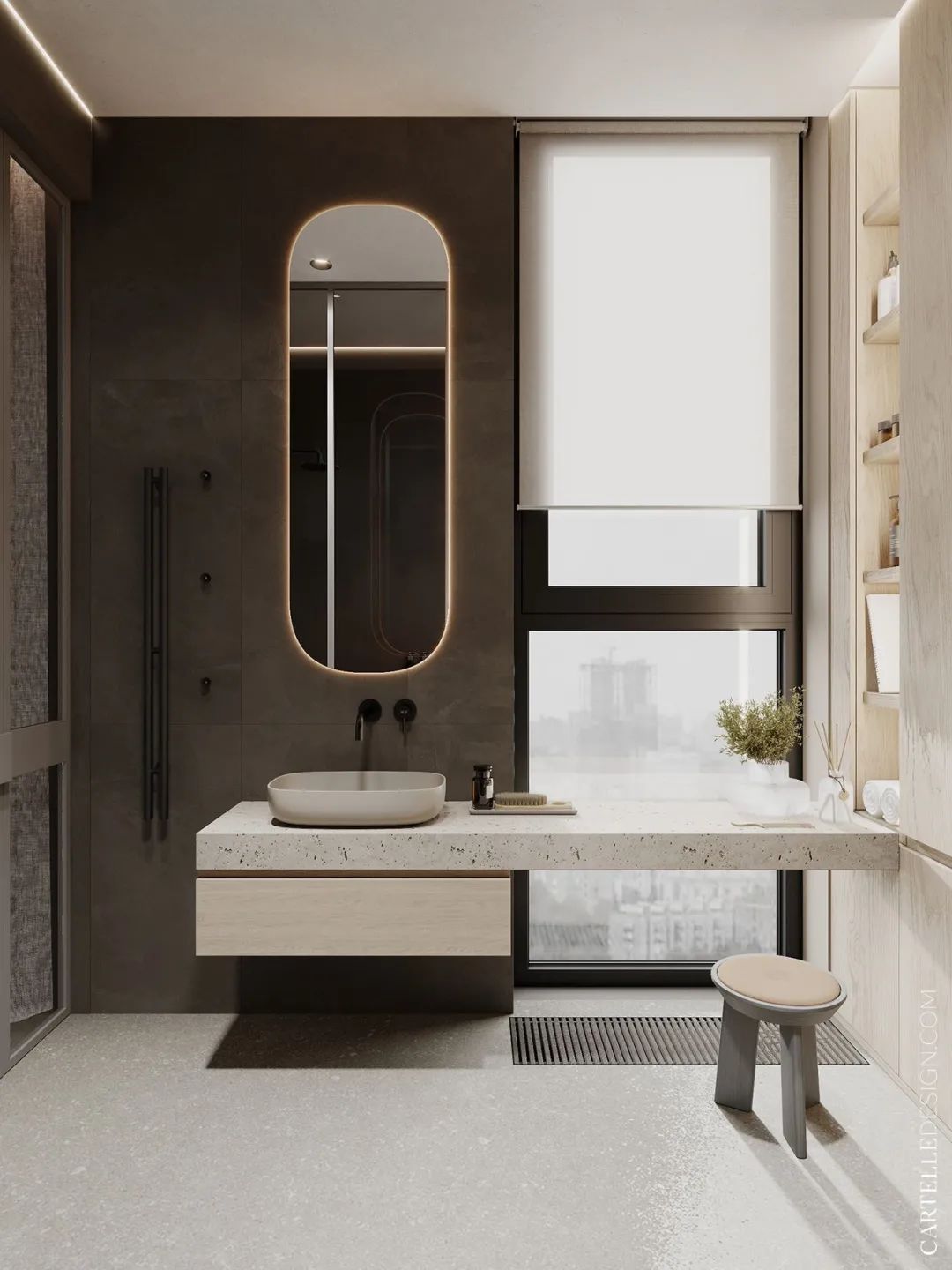 以優(yōu)化空間為主要任務,設法使空間的每平方米面積都得到利用,為其提供了所有必要的功能。將公寓分為兩個區(qū)域布局,走廊、廚房和客廳的公共空間是這個項目最成功的解決方案。這個區(qū)域的中心是長凳旁邊的一棵樹,象征著家庭。
