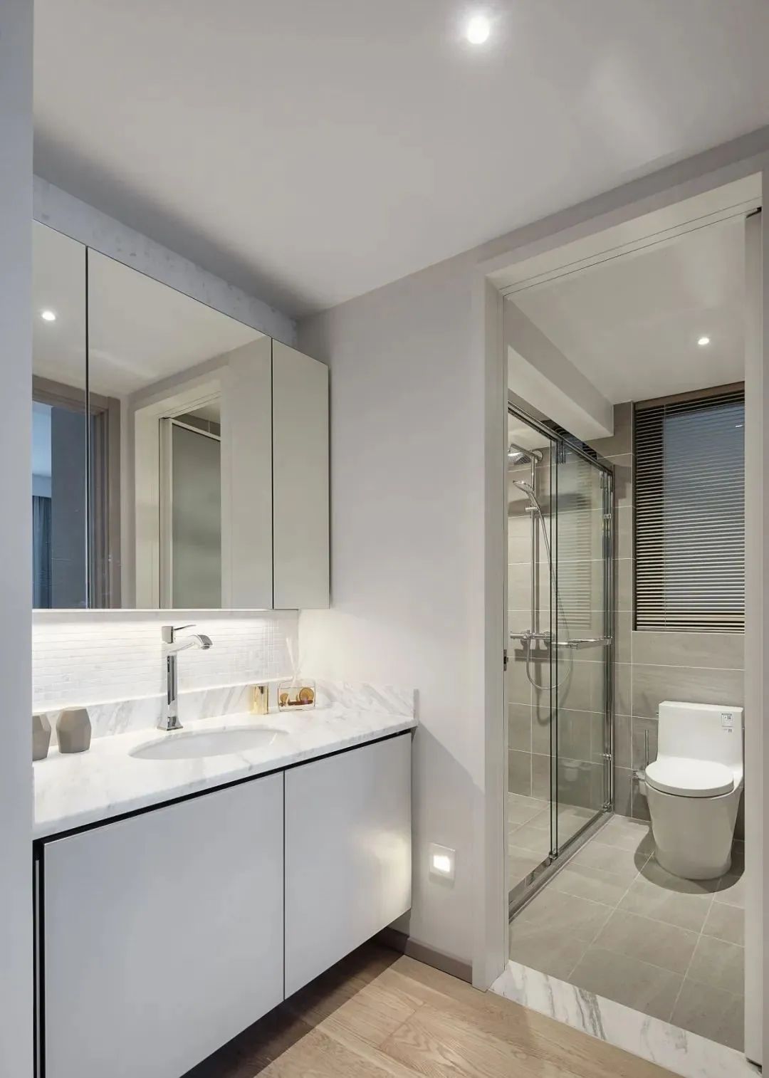 衛生間也是選用了淺色系的磚,干凈整潔,顯亮堂。